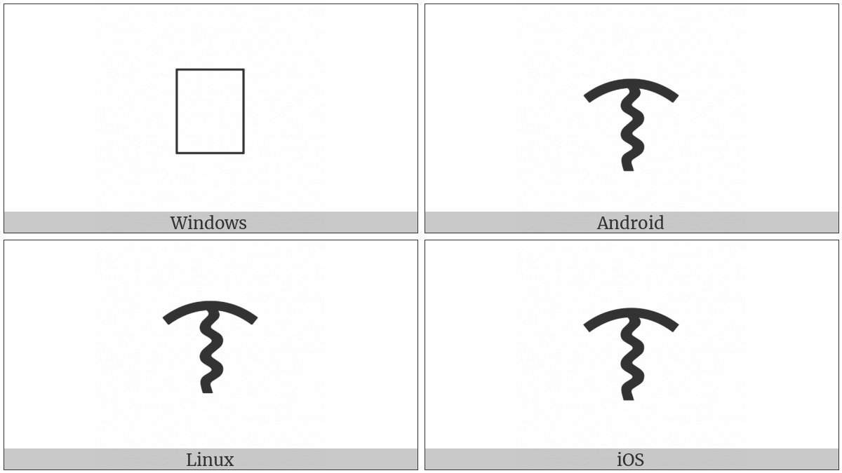 The image below shows how the “Tagbanwa Letter Ga” symbol might look like on different operating systems. If the font in which this web site is displayed does not contain the symbol and there is no fallback font able to render it, you can use the image below to get an idea of what it should look like.