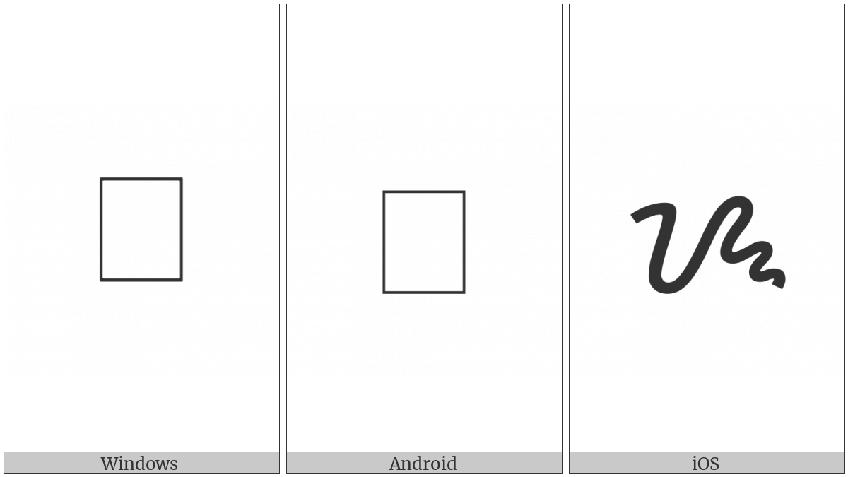 The image below shows how the “Tagbanwa Letter Sa” symbol might look like on different operating systems. If the font in which this web site is displayed does not contain the symbol and there is no fallback font able to render it, you can use the image below to get an idea of what it should look like.