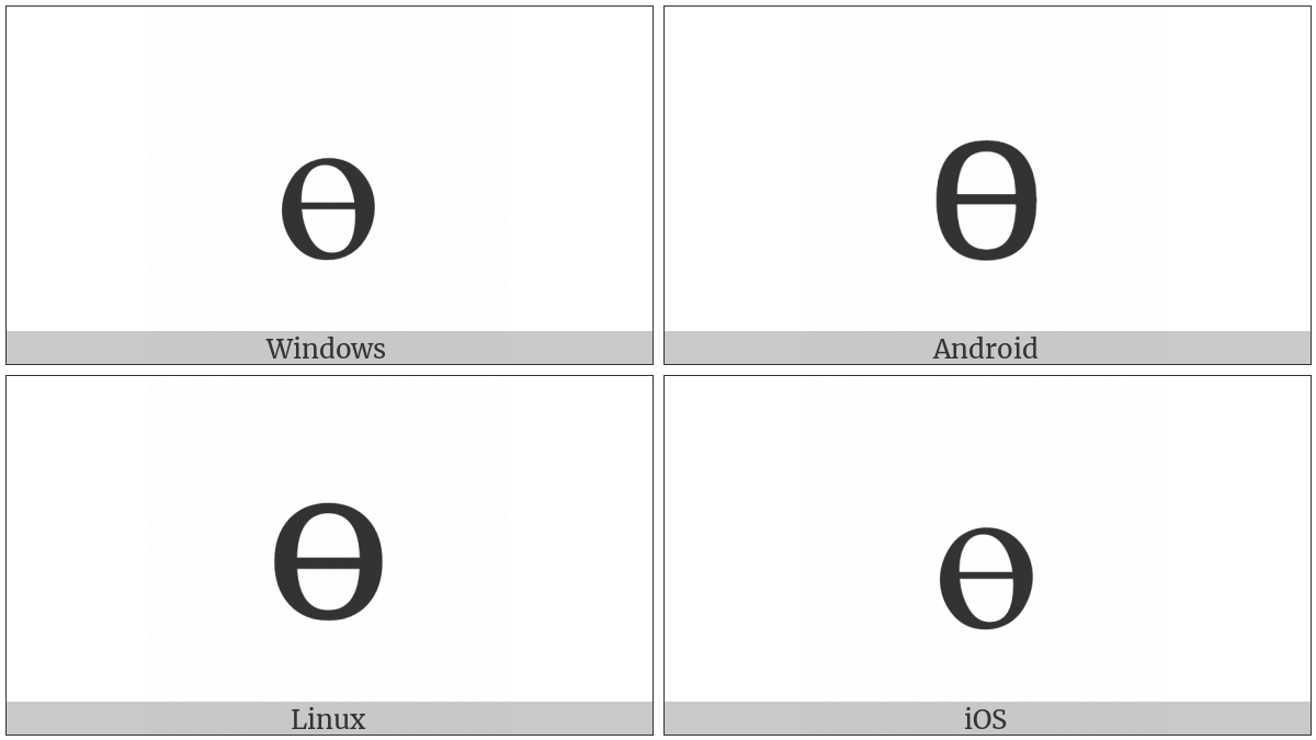 The image below shows how the “Latin Small Letter Barred O” symbol might look like on different operating systems. If the font in which this web site is displayed does not contain the symbol and there is no fallback font able to render it, you can use the image below to get an idea of what it should look like.