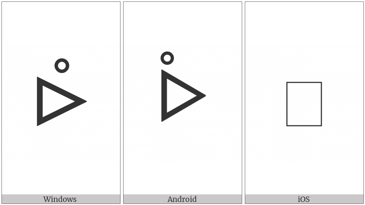 The image below shows how the “Canadian Syllabics Oy” symbol might look like on different operating systems. If the font in which this web site is displayed does not contain the symbol and there is no fallback font able to render it, you can use the image below to get an idea of what it should look like.