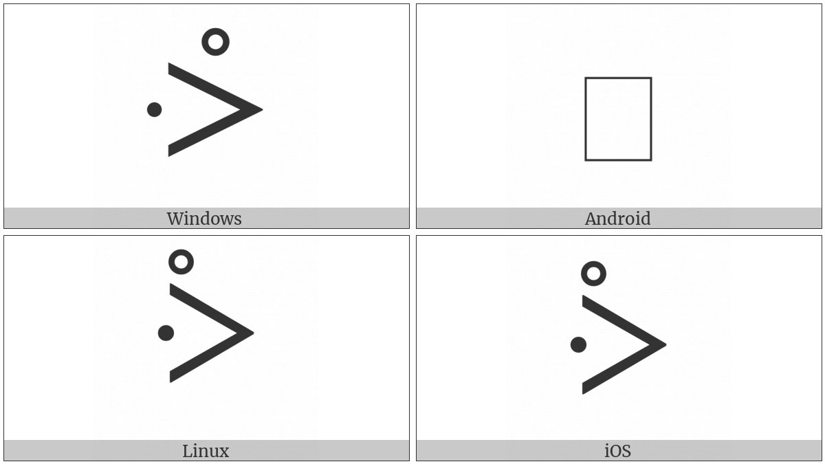 The image below shows how the “Canadian Syllabics Pwoy” symbol might look like on different operating systems. If the font in which this web site is displayed does not contain the symbol and there is no fallback font able to render it, you can use the image below to get an idea of what it should look like.