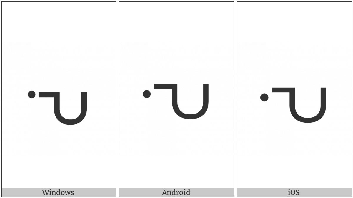 The image below shows how the “Canadian Syllabics Rwee” symbol might look like on different operating systems. If the font in which this web site is displayed does not contain the symbol and there is no fallback font able to render it, you can use the image below to get an idea of what it should look like.