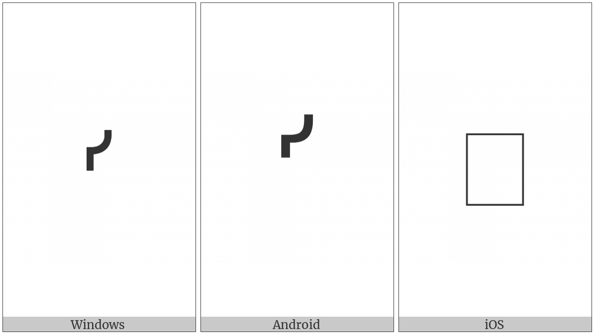 The image below shows how the “Canadian Syllabics Ojibway S” symbol might look like on different operating systems. If the font in which this web site is displayed does not contain the symbol and there is no fallback font able to render it, you can use the image below to get an idea of what it should look like.