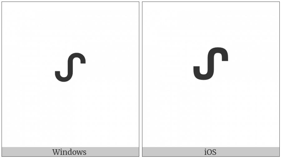 The image below shows how the “Canadian Syllabics Ojibway Sh” symbol might look like on different operating systems. If the font in which this web site is displayed does not contain the symbol and there is no fallback font able to render it, you can use the image below to get an idea of what it should look like.