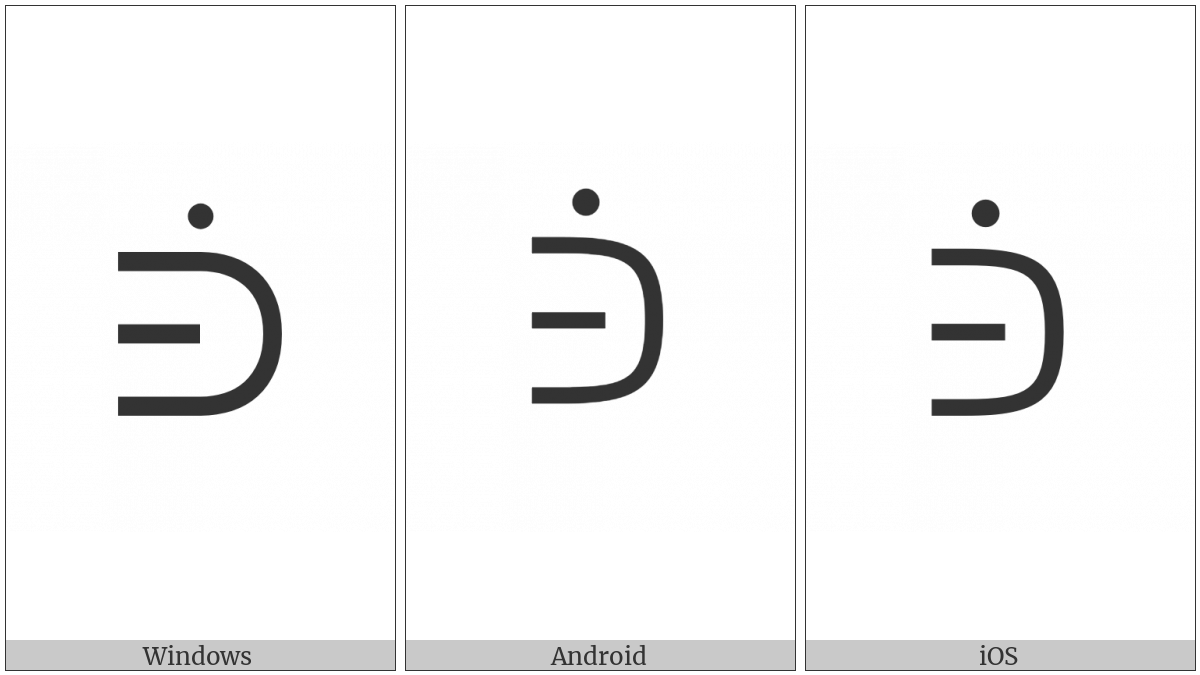 The image below shows how the “Canadian Syllabics Tthoo” symbol might look like on different operating systems. If the font in which this web site is displayed does not contain the symbol and there is no fallback font able to render it, you can use the image below to get an idea of what it should look like.