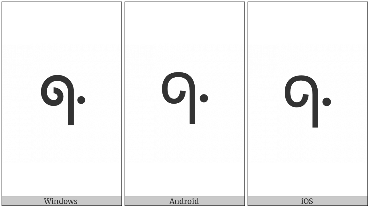 The image below shows how the “Canadian Syllabics Sayisi Shwe” symbol might look like on different operating systems. If the font in which this web site is displayed does not contain the symbol and there is no fallback font able to render it, you can use the image below to get an idea of what it should look like.