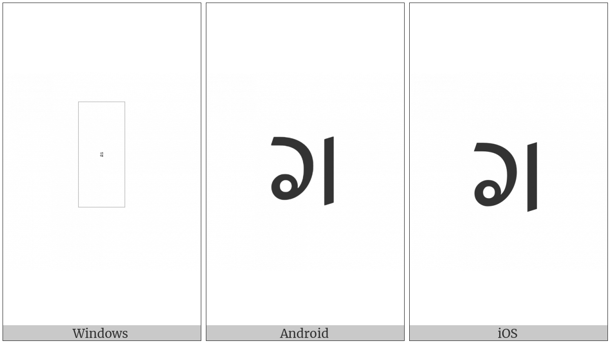 The image below shows how the “Limbu Letter Ca” symbol might look like on different operating systems. If the font in which this web site is displayed does not contain the symbol and there is no fallback font able to render it, you can use the image below to get an idea of what it should look like.