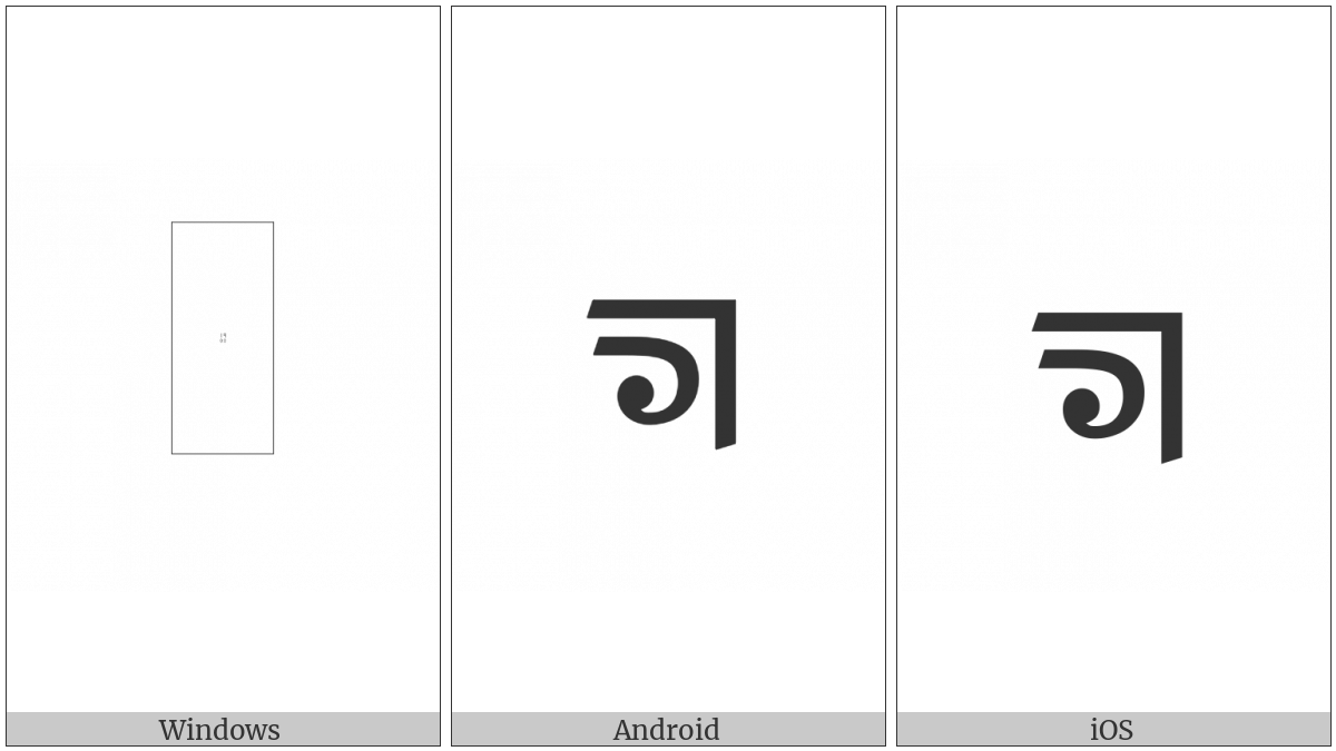 The image below shows how the “Limbu Letter Ja” symbol might look like on different operating systems. If the font in which this web site is displayed does not contain the symbol and there is no fallback font able to render it, you can use the image below to get an idea of what it should look like.