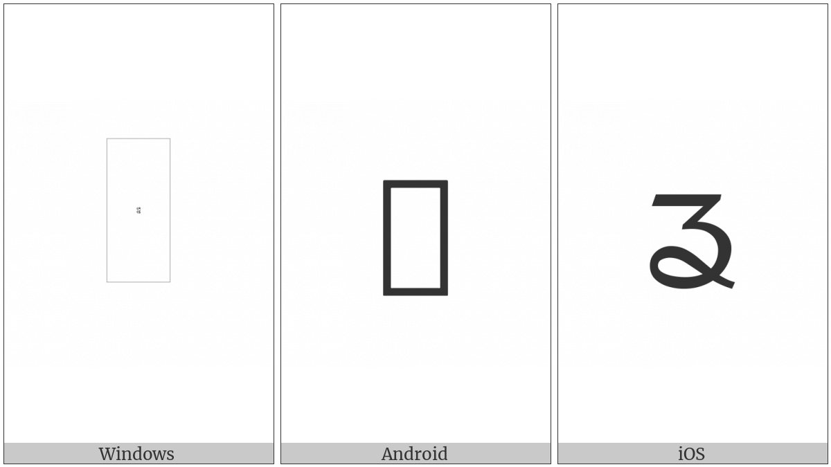 The image below shows how the “Limbu Letter Ya” symbol might look like on different operating systems. If the font in which this web site is displayed does not contain the symbol and there is no fallback font able to render it, you can use the image below to get an idea of what it should look like.