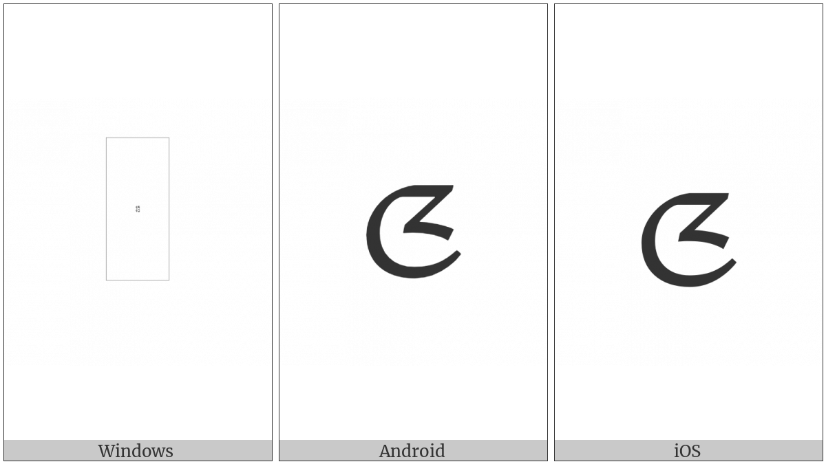 The image below shows how the “Limbu Letter Ha” symbol might look like on different operating systems. If the font in which this web site is displayed does not contain the symbol and there is no fallback font able to render it, you can use the image below to get an idea of what it should look like.