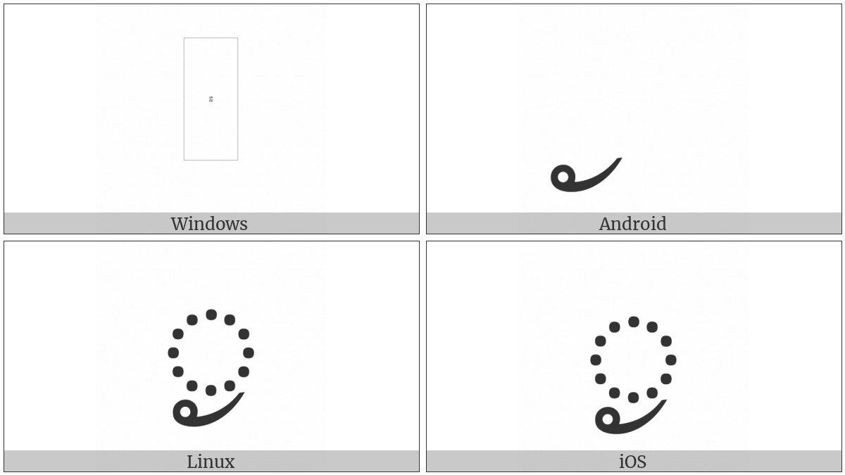 The image below shows how the “Limbu Vowel Sign U” symbol might look like on different operating systems. If the font in which this web site is displayed does not contain the symbol and there is no fallback font able to render it, you can use the image below to get an idea of what it should look like.
