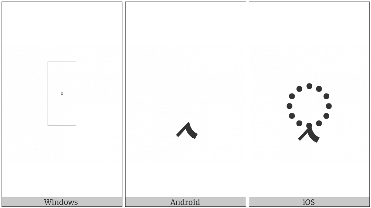 The image below shows how the “Limbu Subjoined Letter Ra” symbol might look like on different operating systems. If the font in which this web site is displayed does not contain the symbol and there is no fallback font able to render it, you can use the image below to get an idea of what it should look like.