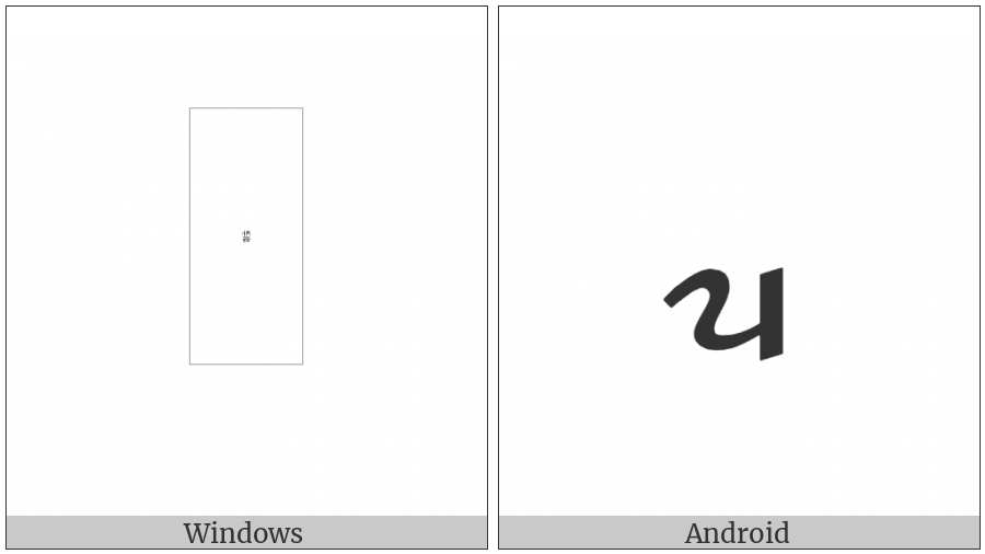 The image below shows how the “Limbu Subjoined Letter Wa” symbol might look like on different operating systems. If the font in which this web site is displayed does not contain the symbol and there is no fallback font able to render it, you can use the image below to get an idea of what it should look like.