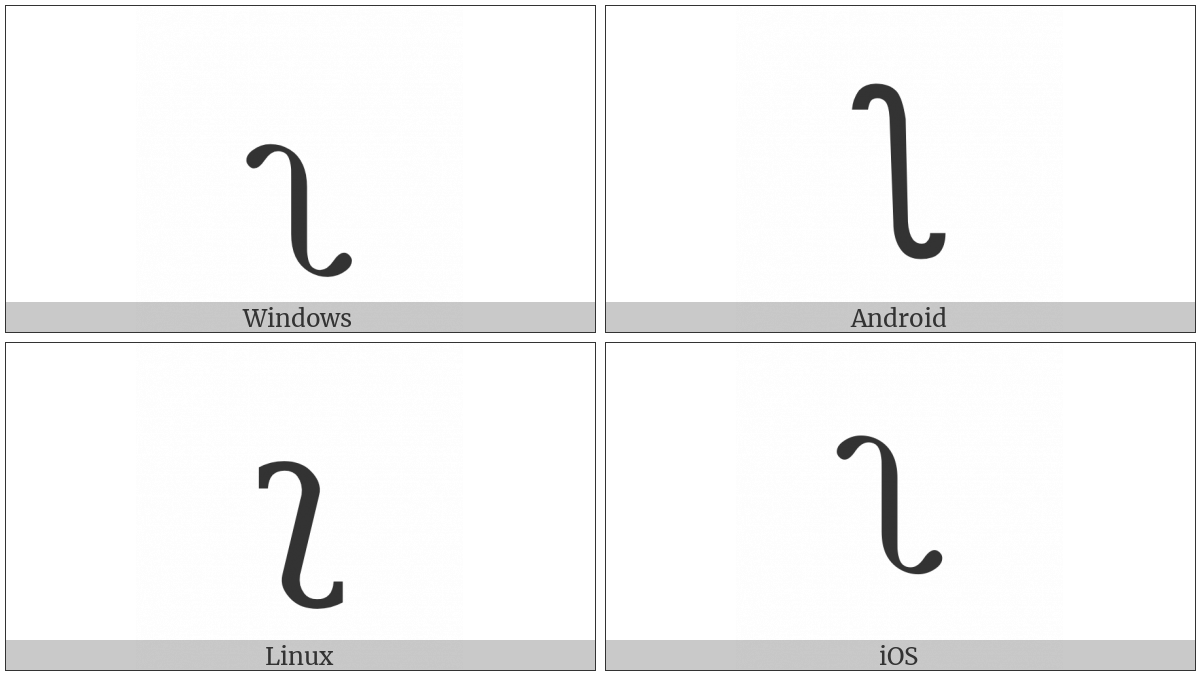 The image below shows how the “Latin Small Letter Squat Reversed Esh” symbol might look like on different operating systems. If the font in which this web site is displayed does not contain the symbol and there is no fallback font able to render it, you can use the image below to get an idea of what it should look like.