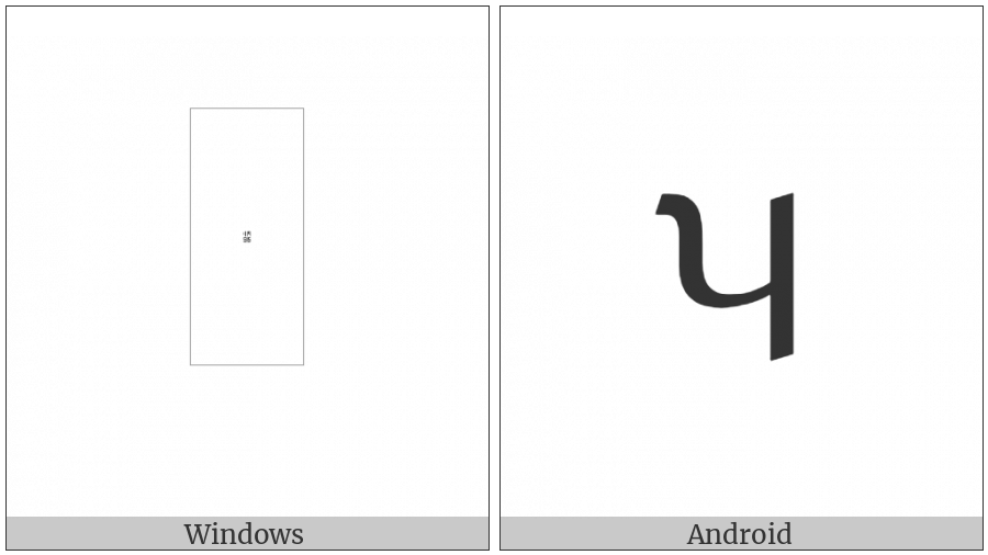 The image below shows how the “Limbu Small Letter Pa” symbol might look like on different operating systems. If the font in which this web site is displayed does not contain the symbol and there is no fallback font able to render it, you can use the image below to get an idea of what it should look like.
