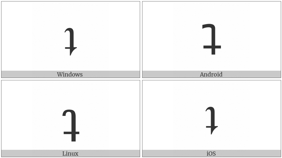 The image below shows how the “Latin Small Letter Turned T” symbol might look like on different operating systems. If the font in which this web site is displayed does not contain the symbol and there is no fallback font able to render it, you can use the image below to get an idea of what it should look like.