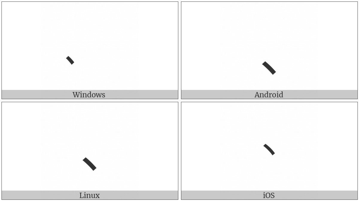 The image below shows how the “Small Ideographic Comma” symbol might look like on different operating systems. If the font in which this web site is displayed does not contain the symbol and there is no fallback font able to render it, you can use the image below to get an idea of what it should look like.