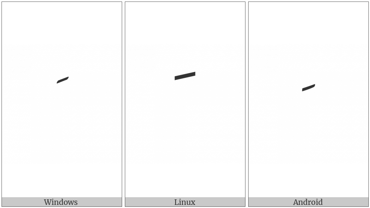 The image below shows how the “Arabic Fatha Isolated Form” symbol might look like on different operating systems. If the font in which this web site is displayed does not contain the symbol and there is no fallback font able to render it, you can use the image below to get an idea of what it should look like.