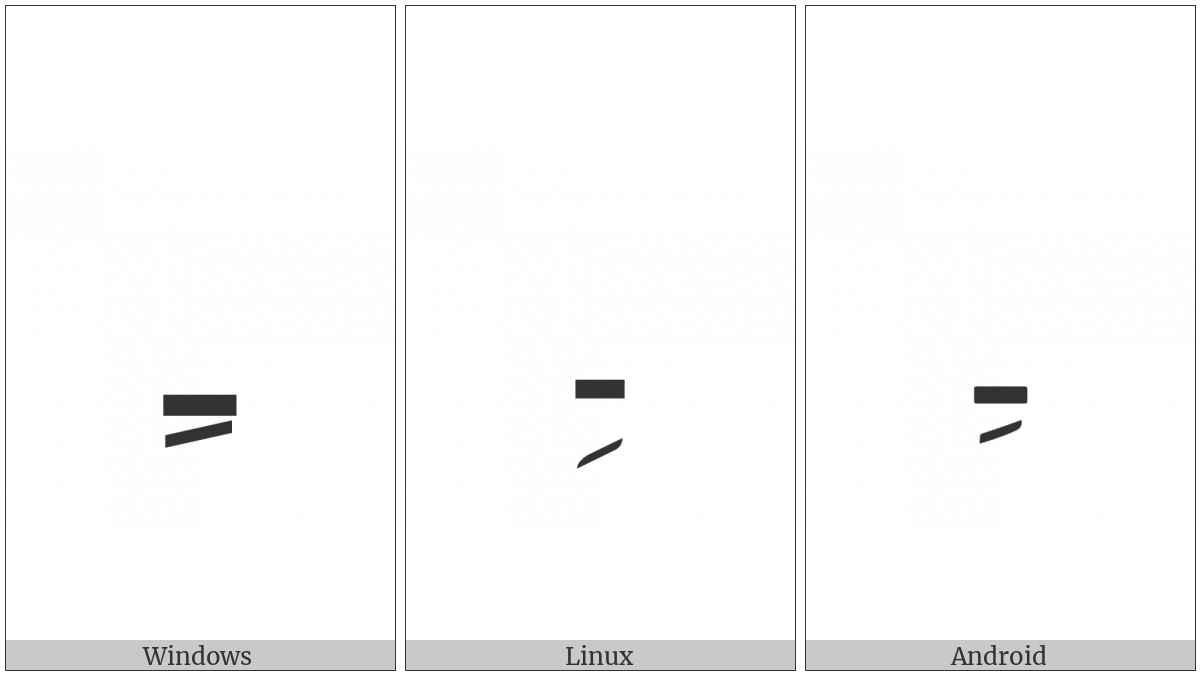 The image below shows how the “Arabic Kasra Medial Form” symbol might look like on different operating systems. If the font in which this web site is displayed does not contain the symbol and there is no fallback font able to render it, you can use the image below to get an idea of what it should look like.