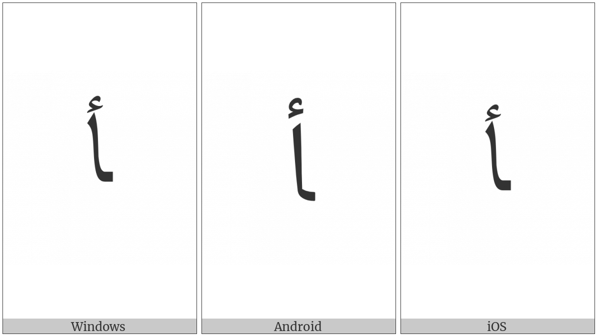 Arabic Letter Alef With Hamza Above Final Form on various operating systems