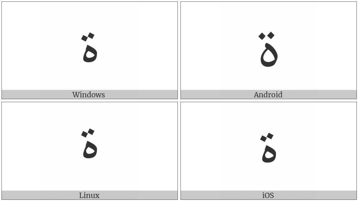 The image below shows how the “Arabic Letter Teh Marbuta Isolated Form” symbol might look like on different operating systems. If the font in which this web site is displayed does not contain the symbol and there is no fallback font able to render it, you can use the image below to get an idea of what it should look like.