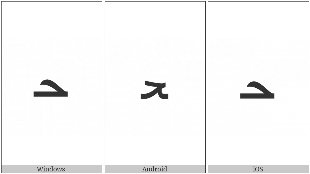 The image below shows how the “Arabic Letter Hah Medial Form” symbol might look like on different operating systems. If the font in which this web site is displayed does not contain the symbol and there is no fallback font able to render it, you can use the image below to get an idea of what it should look like.