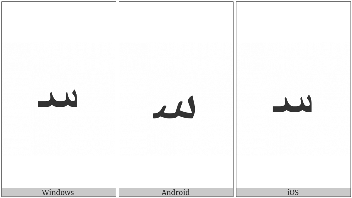 The image below shows how the “Arabic Letter Seen Initial Form” symbol might look like on different operating systems. If the font in which this web site is displayed does not contain the symbol and there is no fallback font able to render it, you can use the image below to get an idea of what it should look like.