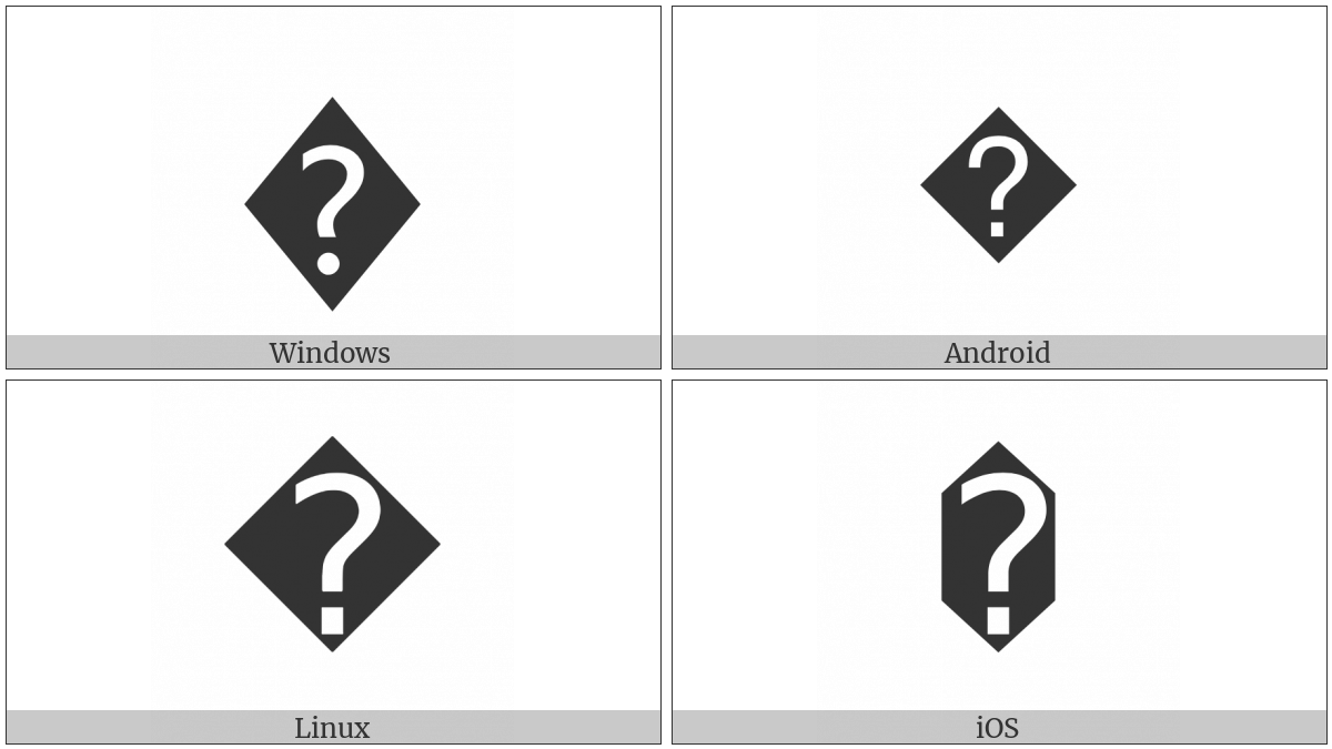 The image below shows how the “Replacement Character” symbol might look like on different operating systems. If the font in which this web site is displayed does not contain the symbol and there is no fallback font able to render it, you can use the image below to get an idea of what it should look like.