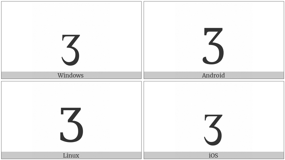The image below shows how the “Latin Small Letter Ezh” symbol might look like on different operating systems. If the font in which this web site is displayed does not contain the symbol and there is no fallback font able to render it, you can use the image below to get an idea of what it should look like.