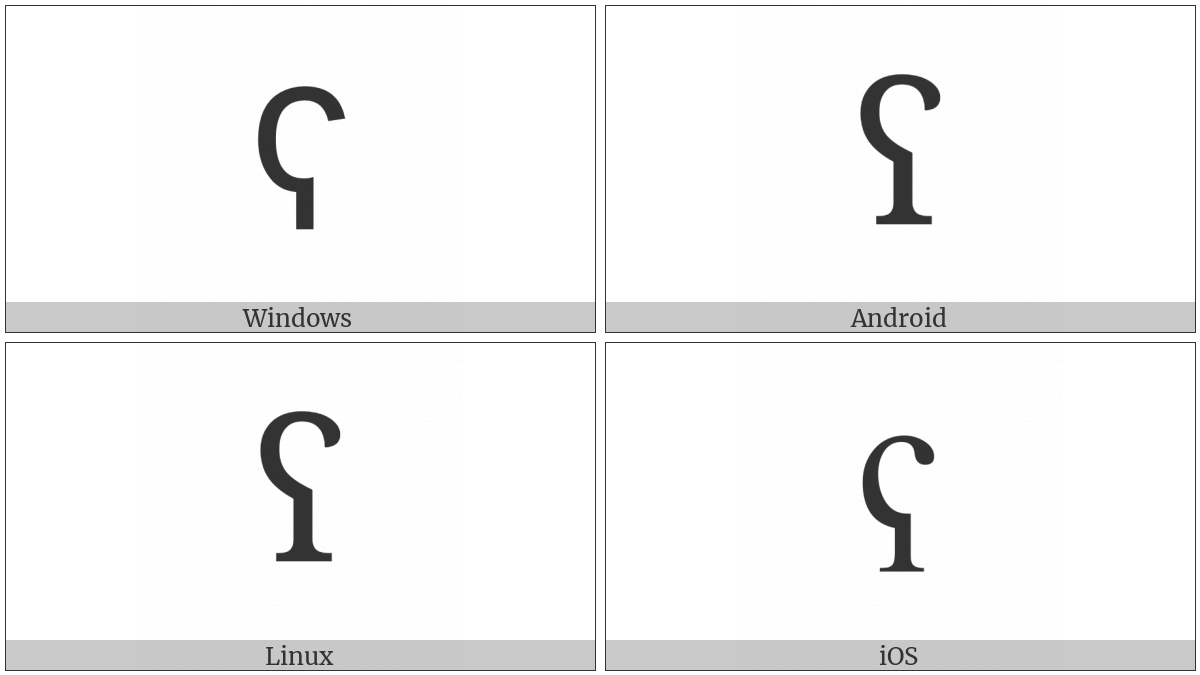 The image below shows how the “Latin Letter Pharyngeal Voiced Fricative” symbol might look like on different operating systems. If the font in which this web site is displayed does not contain the symbol and there is no fallback font able to render it, you can use the image below to get an idea of what it should look like.