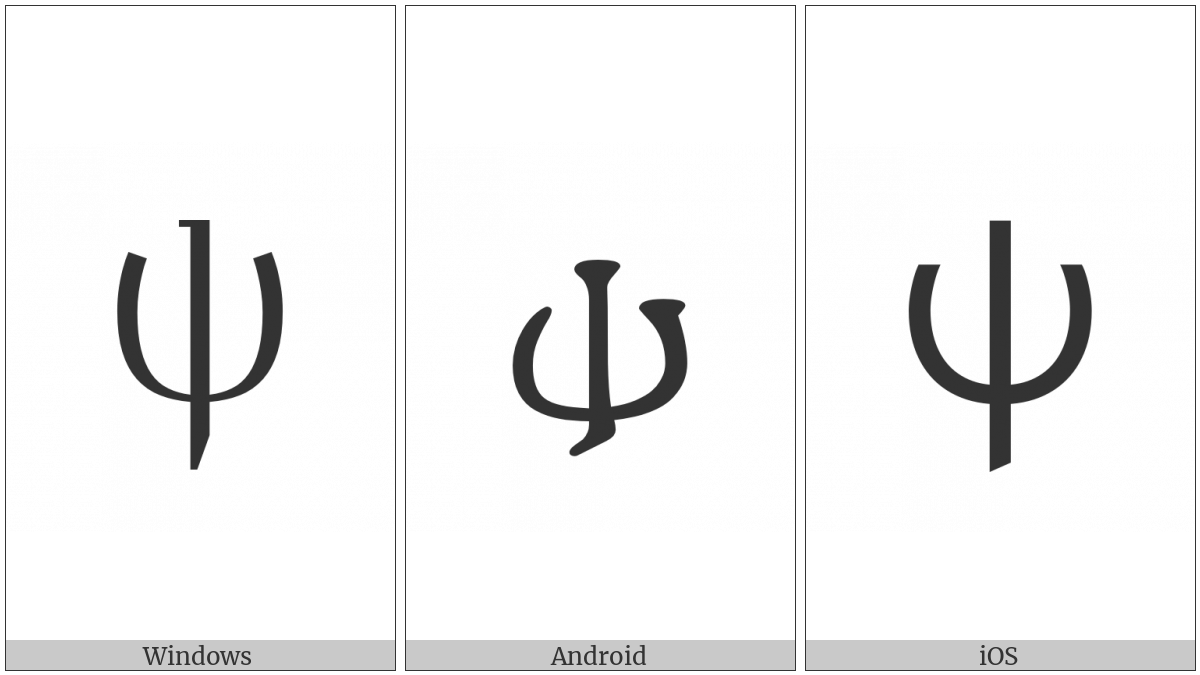 The image below shows how the “Gothic Letter Thiuth” symbol might look like on different operating systems. If the font in which this web site is displayed does not contain the symbol and there is no fallback font able to render it, you can use the image below to get an idea of what it should look like.