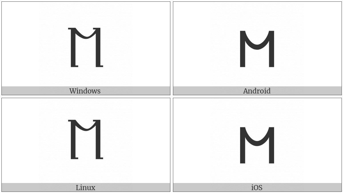 The image below shows how the “Gothic Letter Manna” symbol might look like on different operating systems. If the font in which this web site is displayed does not contain the symbol and there is no fallback font able to render it, you can use the image below to get an idea of what it should look like.