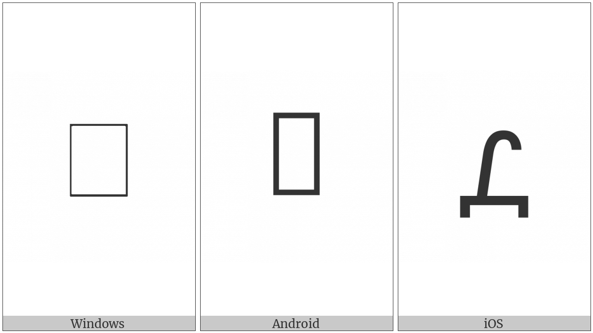 The image below shows how the “Old Permic Letter Koke” symbol might look like on different operating systems. If the font in which this web site is displayed does not contain the symbol and there is no fallback font able to render it, you can use the image below to get an idea of what it should look like.