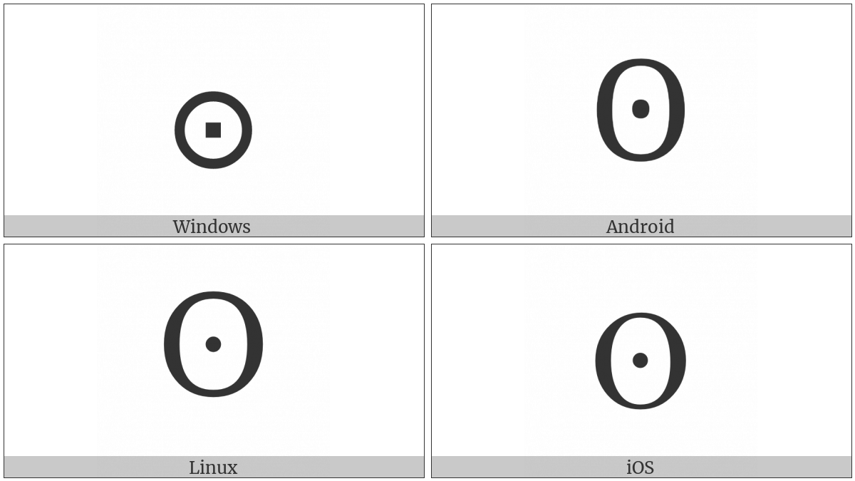 The image below shows how the “Latin Letter Bilabial Click” symbol might look like on different operating systems. If the font in which this web site is displayed does not contain the symbol and there is no fallback font able to render it, you can use the image below to get an idea of what it should look like.