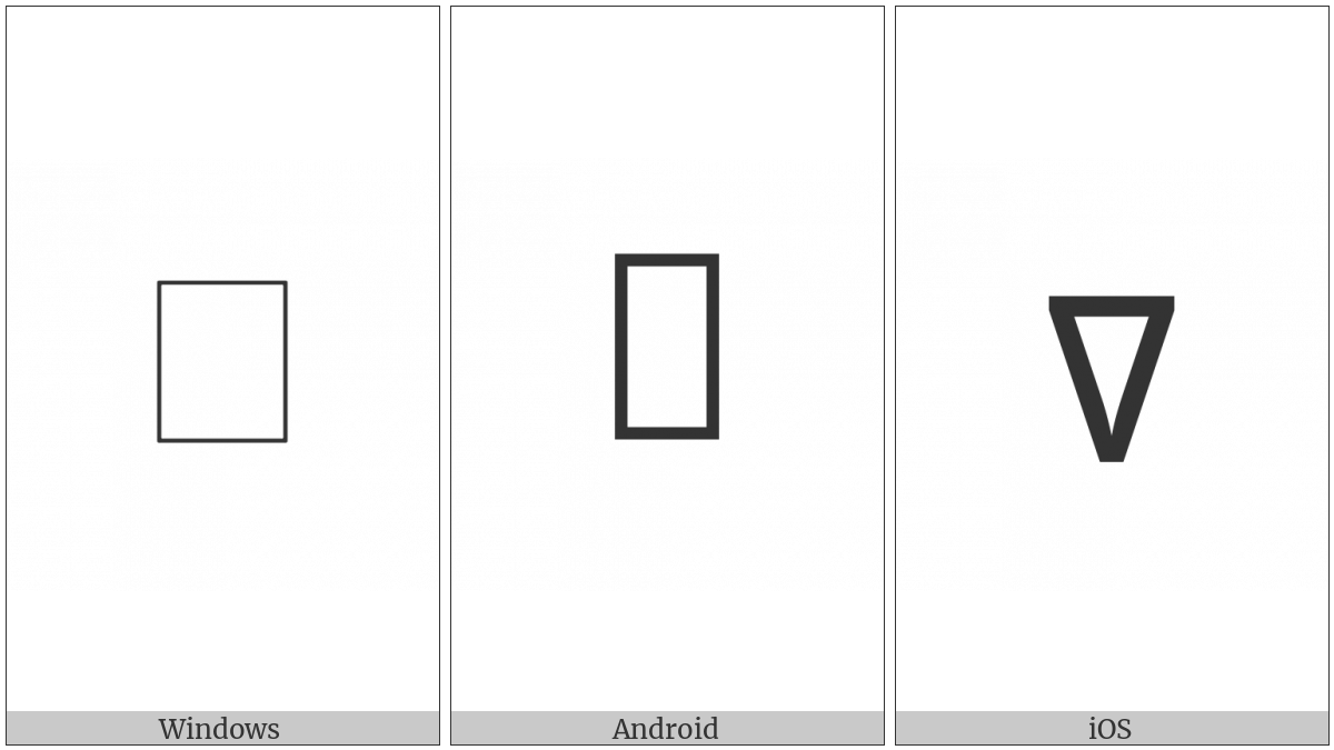 The image below shows how the “Old Permic Letter Rei” symbol might look like on different operating systems. If the font in which this web site is displayed does not contain the symbol and there is no fallback font able to render it, you can use the image below to get an idea of what it should look like.
