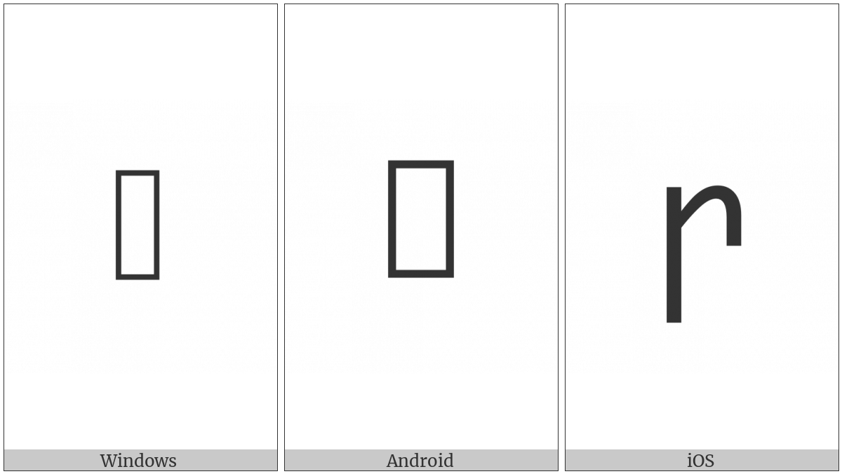 The image below shows how the “Old Permic Letter U” symbol might look like on different operating systems. If the font in which this web site is displayed does not contain the symbol and there is no fallback font able to render it, you can use the image below to get an idea of what it should look like.