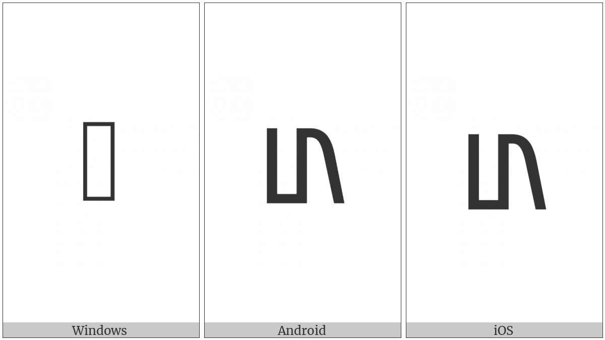 The image below shows how the “Old Permic Letter Yeru” symbol might look like on different operating systems. If the font in which this web site is displayed does not contain the symbol and there is no fallback font able to render it, you can use the image below to get an idea of what it should look like.