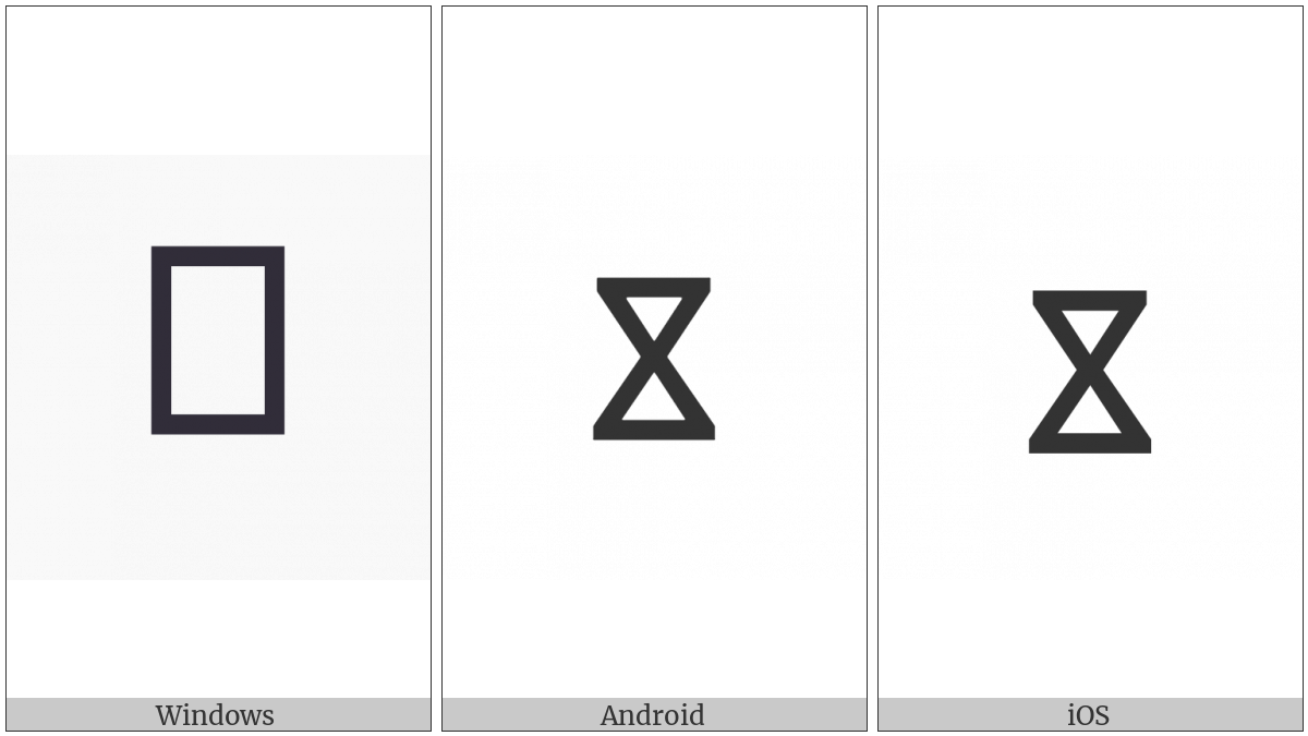The image below shows how the “Old Permic Letter Ver” symbol might look like on different operating systems. If the font in which this web site is displayed does not contain the symbol and there is no fallback font able to render it, you can use the image below to get an idea of what it should look like.