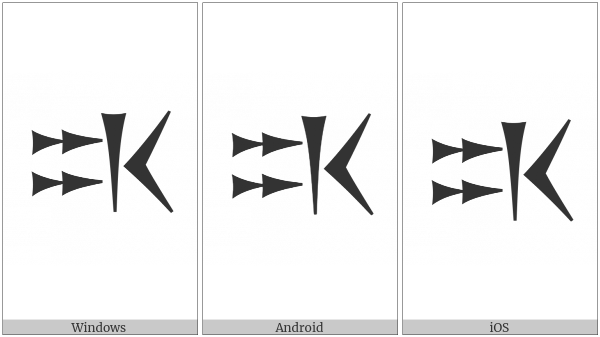 The image below shows how the “Old Persian Sign Auramazdaa” symbol might look like on different operating systems. If the font in which this web site is displayed does not contain the symbol and there is no fallback font able to render it, you can use the image below to get an idea of what it should look like.