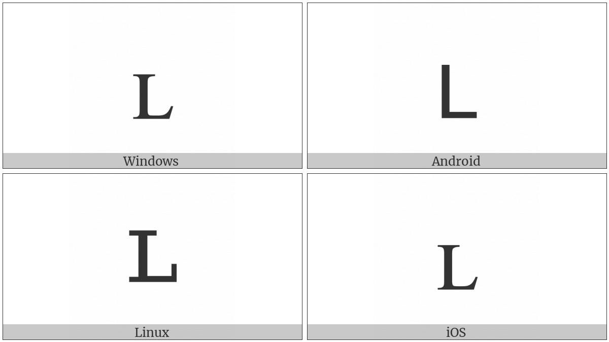 The image below shows how the “Latin Letter Small Capital L” symbol might look like on different operating systems. If the font in which this web site is displayed does not contain the symbol and there is no fallback font able to render it, you can use the image below to get an idea of what it should look like.