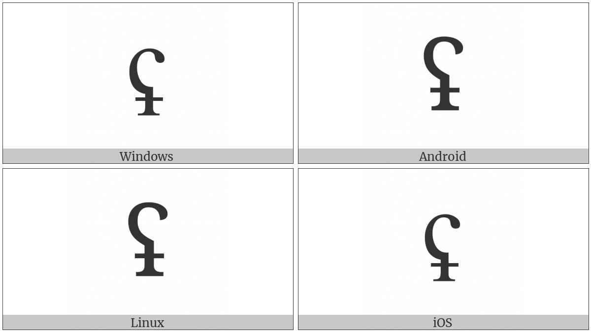 The image below shows how the “Latin Letter Reversed Glottal Stop With Stroke” symbol might look like on different operating systems. If the font in which this web site is displayed does not contain the symbol and there is no fallback font able to render it, you can use the image below to get an idea of what it should look like.
