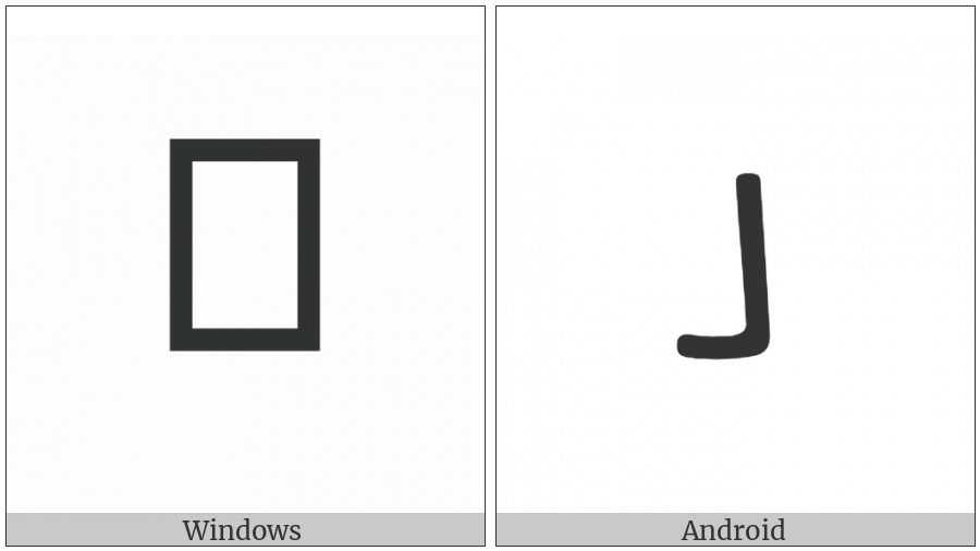 The image below shows how the “Nabataean Letter Nun” symbol might look like on different operating systems. If the font in which this web site is displayed does not contain the symbol and there is no fallback font able to render it, you can use the image below to get an idea of what it should look like.