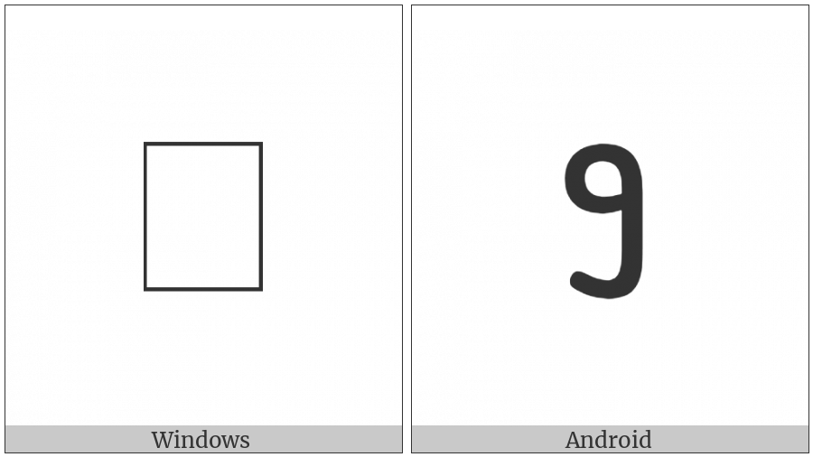 The image below shows how the “Nabataean Letter Pe” symbol might look like on different operating systems. If the font in which this web site is displayed does not contain the symbol and there is no fallback font able to render it, you can use the image below to get an idea of what it should look like.