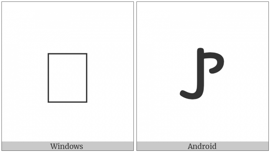 The image below shows how the “Nabataean Letter Sadhe” symbol might look like on different operating systems. If the font in which this web site is displayed does not contain the symbol and there is no fallback font able to render it, you can use the image below to get an idea of what it should look like.
