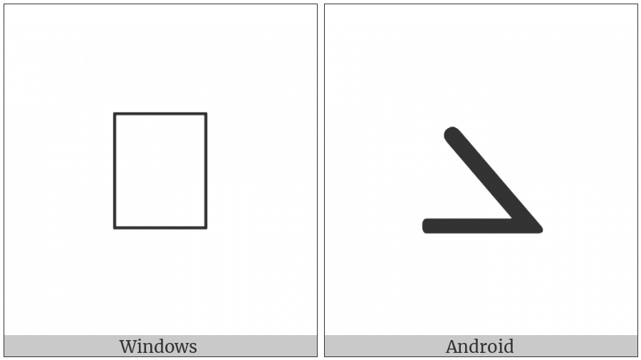 The image below shows how the “Hatran Letter Gimel” symbol might look like on different operating systems. If the font in which this web site is displayed does not contain the symbol and there is no fallback font able to render it, you can use the image below to get an idea of what it should look like.