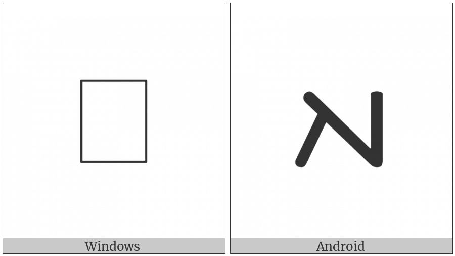 The image below shows how the “Hatran Letter He” symbol might look like on different operating systems. If the font in which this web site is displayed does not contain the symbol and there is no fallback font able to render it, you can use the image below to get an idea of what it should look like.
