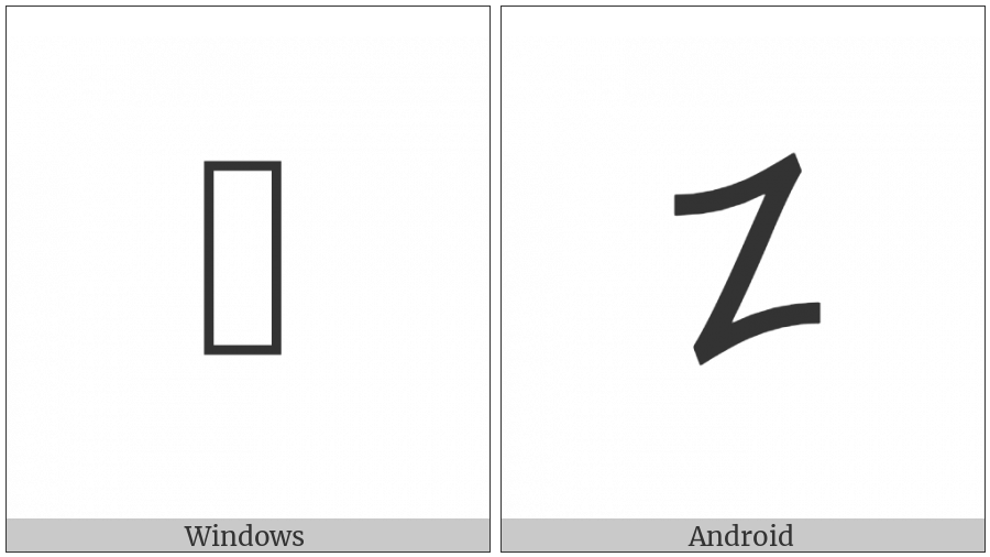 The image below shows how the “Kharoshthi Letter Tta” symbol might look like on different operating systems. If the font in which this web site is displayed does not contain the symbol and there is no fallback font able to render it, you can use the image below to get an idea of what it should look like.
