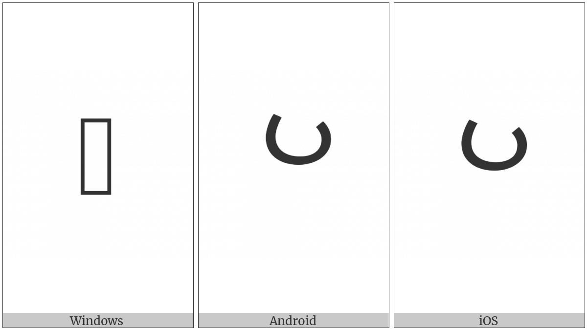 The image below shows how the “Kharoshthi Letter Ma” symbol might look like on different operating systems. If the font in which this web site is displayed does not contain the symbol and there is no fallback font able to render it, you can use the image below to get an idea of what it should look like.