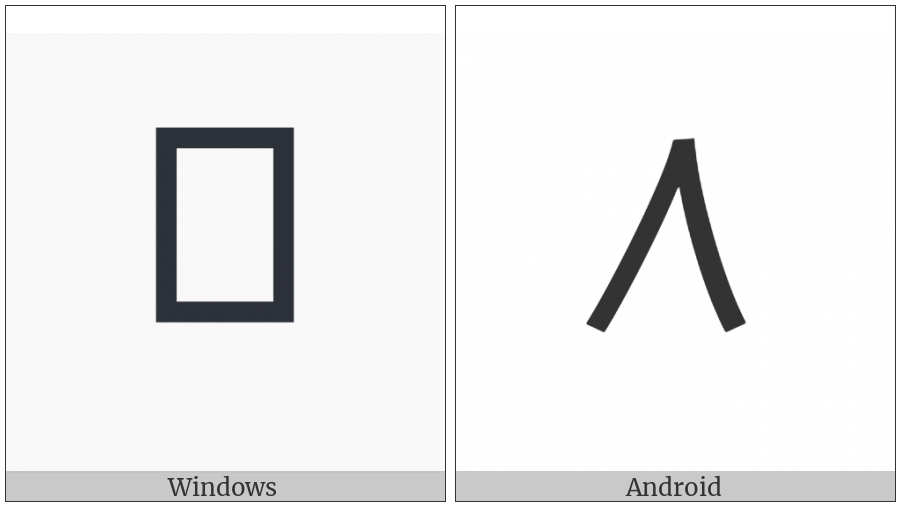 The image below shows how the “Kharoshthi Letter Ya” symbol might look like on different operating systems. If the font in which this web site is displayed does not contain the symbol and there is no fallback font able to render it, you can use the image below to get an idea of what it should look like.