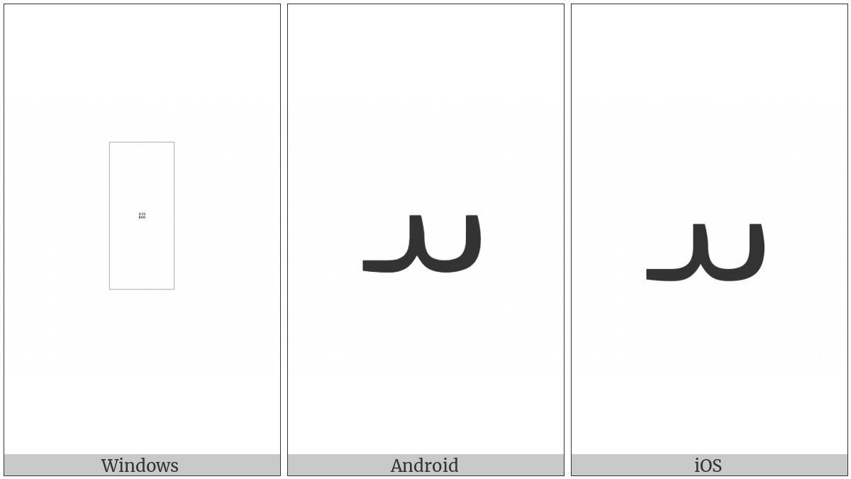 The image below shows how the “Avestan Letter A” symbol might look like on different operating systems. If the font in which this web site is displayed does not contain the symbol and there is no fallback font able to render it, you can use the image below to get an idea of what it should look like.